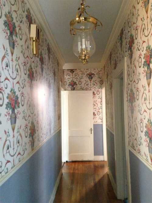 Вот яркий пример того, каким высоким кажется коридор, обклеенный вертикальными обоями