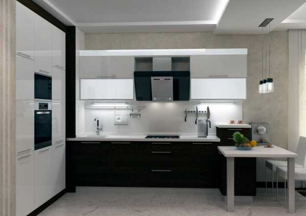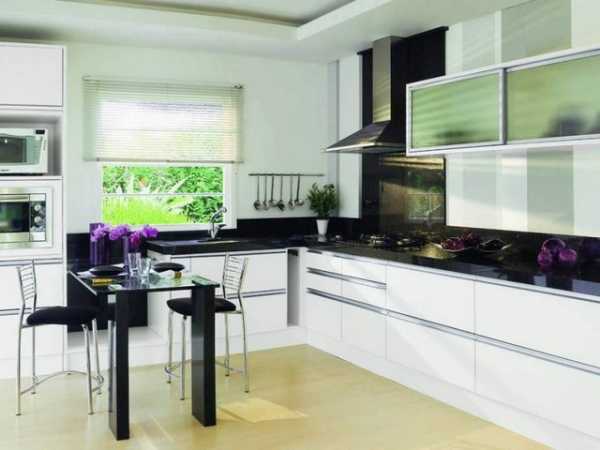 Чисто белые кухни давно утратили свою популярность. Им на смену пришли более стильные варианты меблировки, в котором сочетается два контрастных цвета – светлый и темный. Самое беспроигрышное решение в оформлении черно-белой кухни – выстроить оттенки по горизонтали – черный верх и белый низ, или наоборот – белый верх и черный низ. Элегантно смотрится кухонный интерьер с белой мебелью и черным фартуком. Его дополняют декоративными вставками, светодиодной подсветкой или софитами.