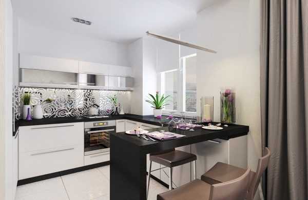 Если есть возможность совместить балкон и кухню, то барная стойка будет достойным решением в зонировании пространства.