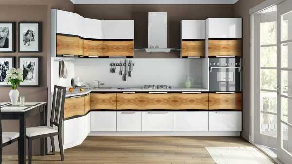 Угловая кухня смотрится стильно и лаконично как в небольших комнатах, так и в просторных помещениях