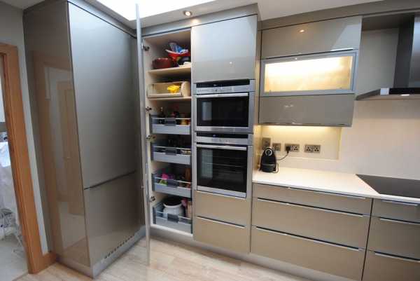 Встраиваемыми называют кухни, дизайн и конструктив которых разработан по индивидуальному проекту. Современные идеи и разработки позволяют прятать за мебельными фасадами практически всю бытовую технику – от холодильника и посудомоечной машины до вытяжки и микроволновки. При разработке индивидуального проекта обязательно учитывают расположение коммуникаций – водопровода, канализационных труб, вентиляционных каналов и электропроводки.