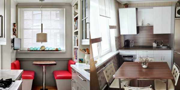 Такой вариант также хорошо подходит для маленькой кухни, ведь обычно область у окна вообще не используется.