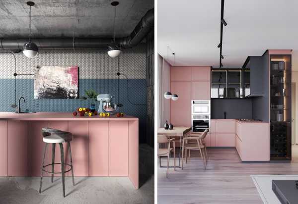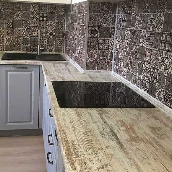 Актуальны в 2019 году фактурные кухонные фасады под бетон, дерево, камень.