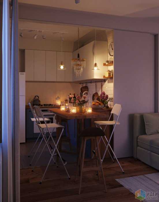 Владельцы миниатюрной кухни нередко отказываются от обустройства в ограниченном пространстве удобной обеденной зоны.