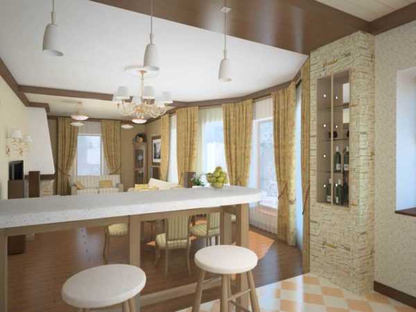 Плюсы объединенной кухни и зоны для отдыха и приема гостей