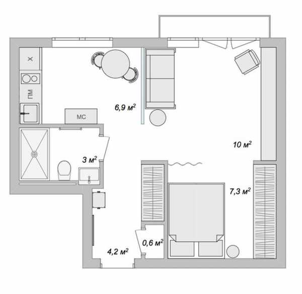 ΠΠΈΠ·Π°ΠΉΠ½ ΠΎΠ΄Π½ΠΎΠΊΠΎΠΌΠ½Π°ΡΠ½ΠΎΠΉ ΠΊΠ²Π°ΡΡΠΈΡΡ 35 ΠΊΠ². ΠΌ: ΡΠΎΠ²ΠΌΠ΅ΡΠ°Π΅ΠΌ ΠΈΠ»ΠΈ ΡΠ°Π·Π΄Π΅Π»ΡΠ΅ΠΌ