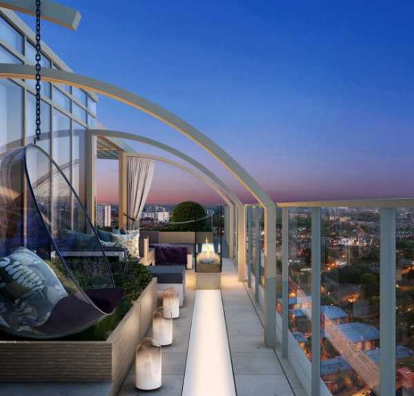 Открытый балкон многоэтажки с шикарным видом на ночной город