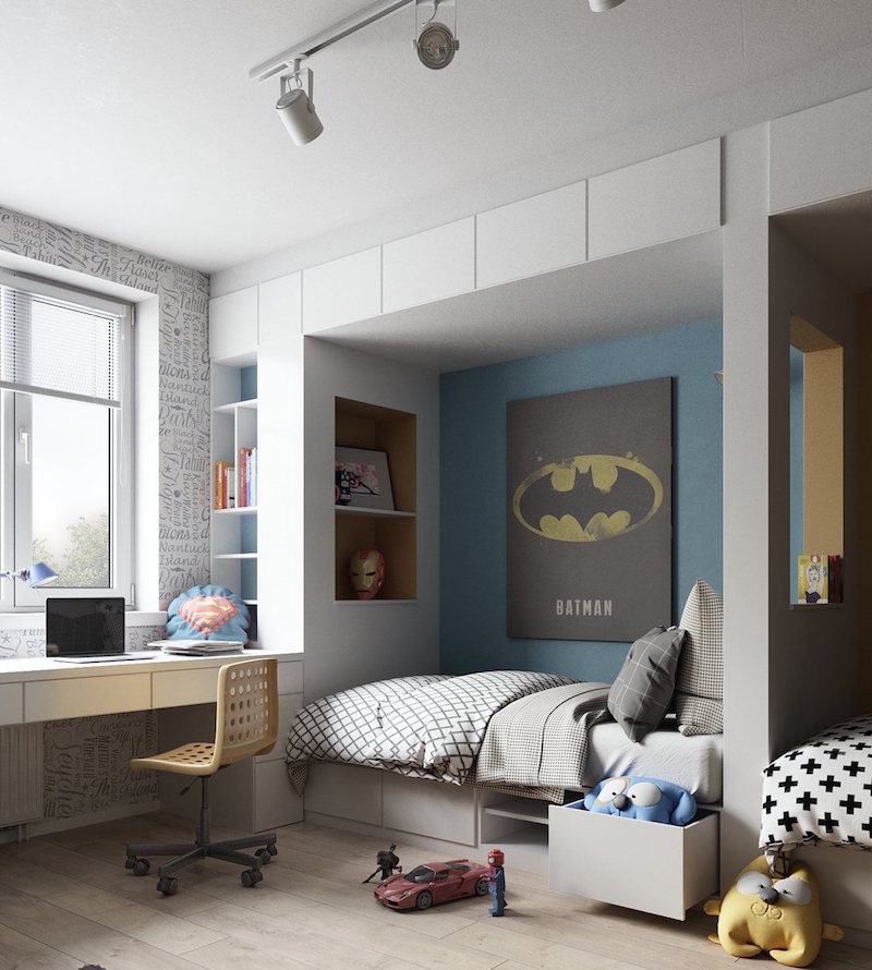 ΠΡΠ»ΠΈ Π² Π²Π°ΡΠ΅ΠΉ ΡΠ΅ΠΌΡΠ΅ ΡΠ°ΡΡΡΡ ΡΡΠ°Π·Ρ Π΄Π²Π° ΠΌΠ°Π»ΡΡΠΈΠΊΠ°, ΡΠΎ ΠΎΠ±ΡΡΡΡΠΎΠΉΡΡΠ²ΠΎ Π΄Π΅ΡΡΠΊΠΎΠΉ ΠΊΠΎΠΌΠ½Π°ΡΡ ΡΡΠ°Π½ΠΎΠ²ΠΈΡΡΡ Π²Π΄Π²ΠΎΠΉΠ½Π΅ ΡΠ²Π»Π΅ΠΊΠ°ΡΠ΅Π»ΡΠ½ΡΠΌ, Π½Π΅ΡΠΌΠΎΡΡΡ Π½Π° ΡΡΠ΄ ΠΎΠΏΡΠ΅Π΄Π΅Π»Π΅Π½Π½ΡΡ ΡΠ»ΠΎΠΆΠ½ΠΎΡΡΠ΅ΠΉ. ΠΡΠΎΠ΄ΡΠΌΡΠ²Π°Ρ Π΄ΠΈΠ·Π°ΠΉΠ½, Π½Π΅ΠΎΠ±Ρ ΠΎΠ΄ΠΈΠΌΠΎ ΡΡΠΈΡΡΠ²Π°ΡΡ ΡΠ°Π·Π½ΠΈΡΡ Π² Π²ΠΎΠ·ΡΠ°ΡΡΠ΅ ΡΠ΅Π±ΡΡ, ΡΠ²Π»Π΅ΡΠ΅Π½ΠΈΡ ΠΈ ΡΠ΅ΠΌΠΏΠ΅ΡΠ°ΠΌΠ΅Π½Ρ ΠΊΠ°ΠΆΠ΄ΠΎΠ³ΠΎ. Π Π»ΡΠ±ΠΎΠΌ ΡΠ»ΡΡΠ°Π΅ Π½Π° ΠΏΠΎΠΌΠΎΡΡ ΠΏΡΠΈΠ΄Π΅Ρ Π³ΡΠ°ΠΌΠΎΡΠ½ΠΎΠ΅ Π·ΠΎΠ½ΠΈΡΠΎΠ²Π°Π½ΠΈΠ΅ ΠΏΡΠΎΡΡΡΠ°Π½ΡΡΠ²Π°.