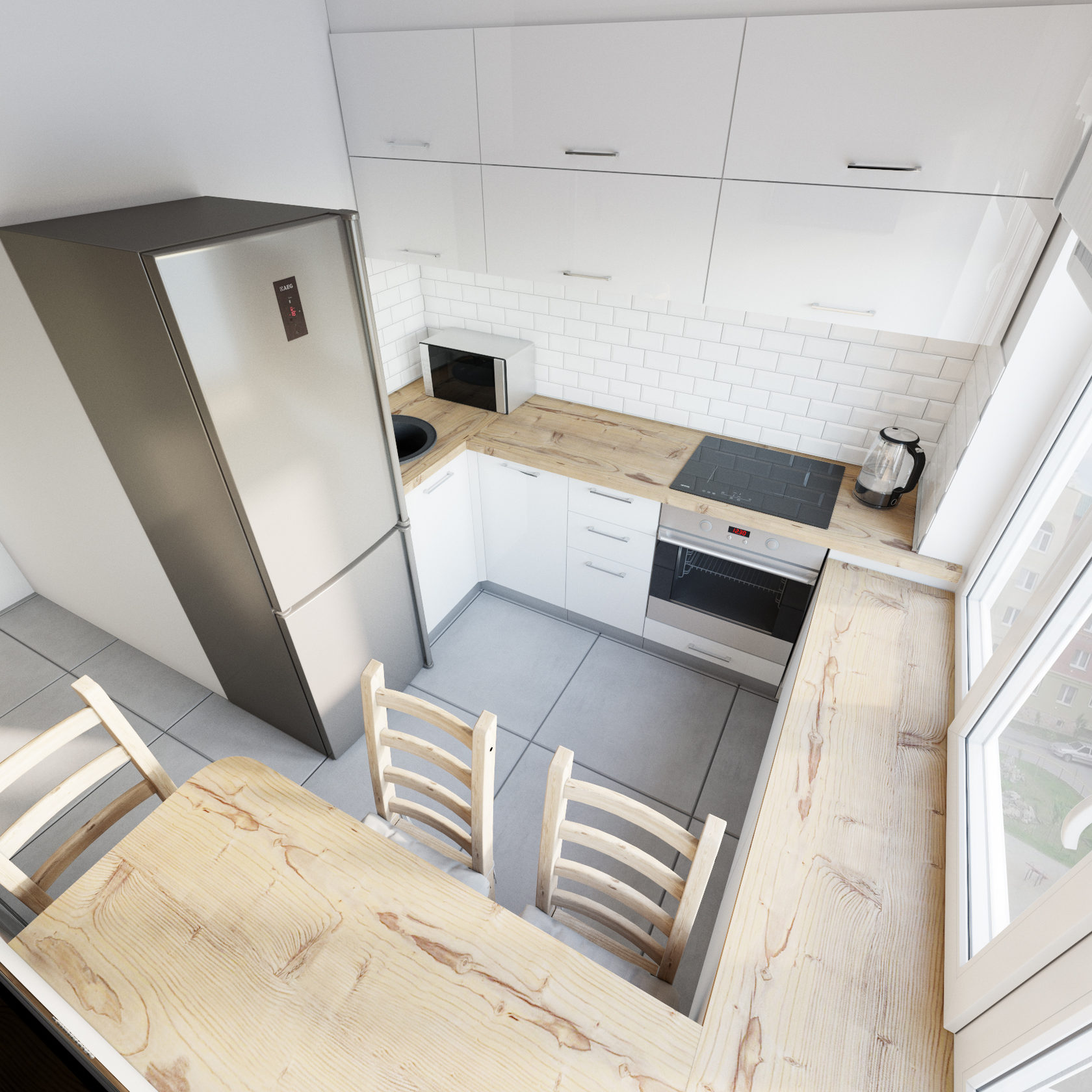 Помните, что тёмные цвета лишь усугубят проблему — и без того небольшая по площади кухня будет казаться ещё меньше.