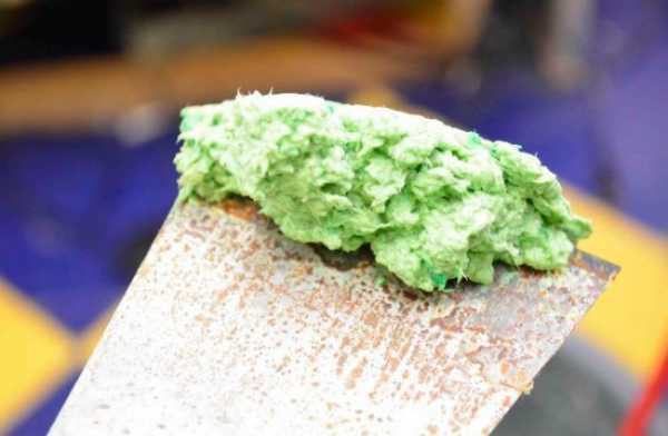 - К полученной субстанции добавляют шпаклевку и клей, тщательно перемешивают. После чего вводят выбранный колер, волокна, блестки и другие декоративные элементы, перемешивая смесь вручную.