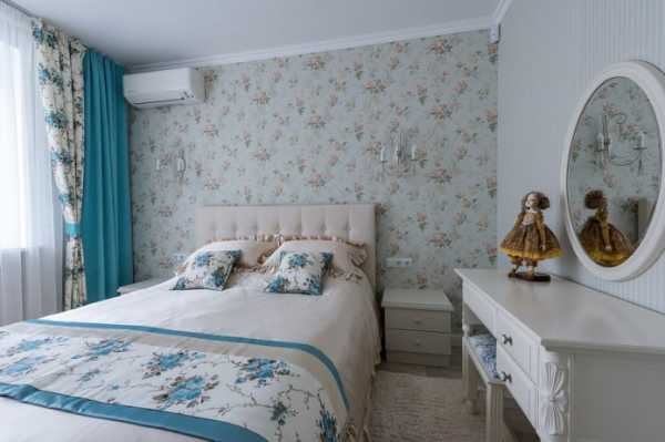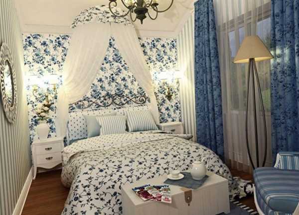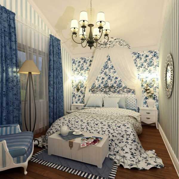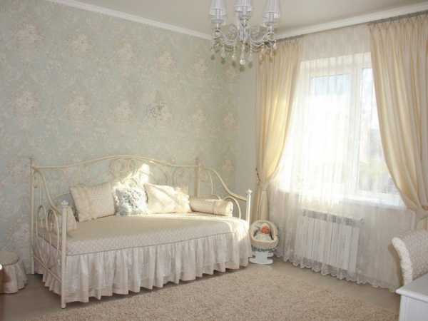 Романтическая атмосфера юга Франции — это пастельные тона (светло-серый, розовый, мятный, сиреневый, молочный) и на их фоне мелкие цветочные принты. Чтобы комната не казалась однообразной, участки обоев с рисунками необходимо чередовать с одноцветными, а также удерживать баланс при выборе текстиля.