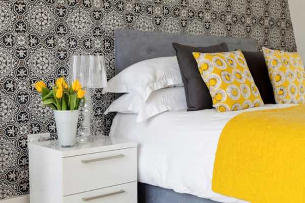 Совет! Если правильно подобрать освещение и оклеить стены обоями «с отливом», то желтые стены вечером будут выглядеть более приглушенно, а утром способствовать бодрому пробуждению.