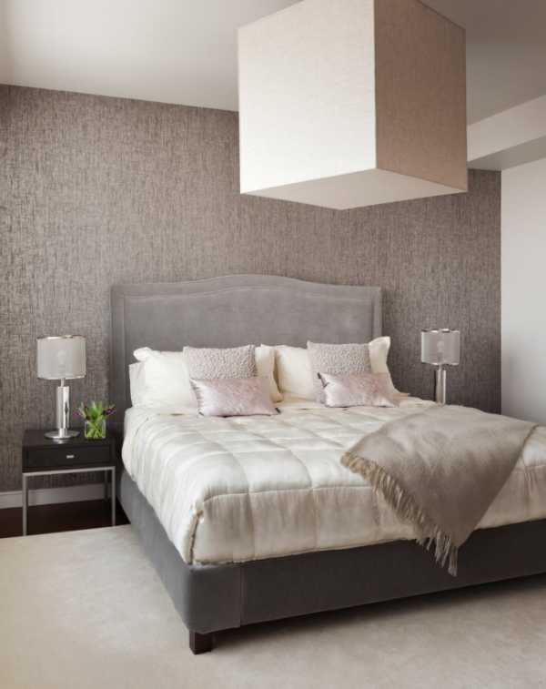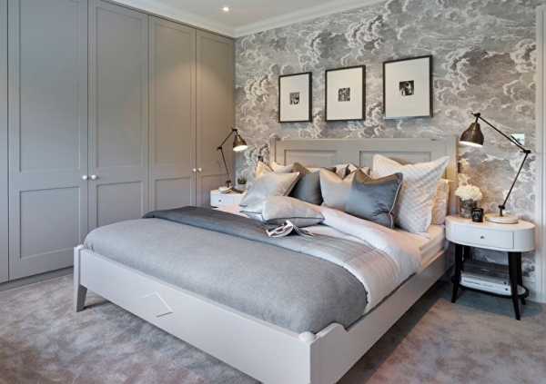 Нейтральные серые обои — оптимальное решение для спальни в стиле хай-тек, модерн, минимализм, лофт. В сочетании с черной или темно-синей мебелью и строгими линиями получится функциональный мужской интерьер; белый глянец и серебряные завитки — вариант для элегантной леди; ярко-желтые, розовые, зеленые акценты на сером фоне — для семейной пары.