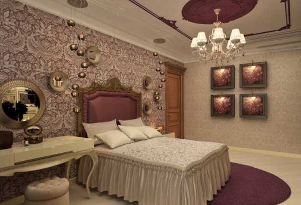 Если спальня делается для девочки, то такой цвет с его многочисленными оттенками преобразит комнату до неузнаваемости. Обои лучше выбирать с узором.