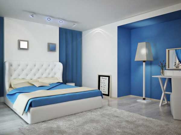 Оттенки неба и воды оказывают успокаивающее влияние на человека, поэтому для спальни они подходят как нельзя лучше. Синие обои можно комбинировать с белыми, серыми, бежевыми, пурпурными, темно-коричневыми, а также дополнять фотообоями.