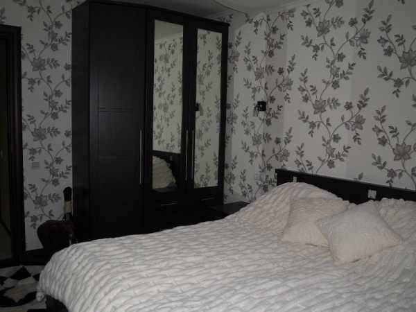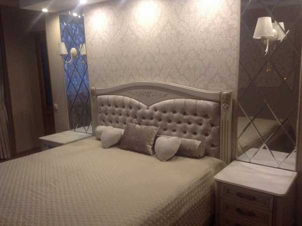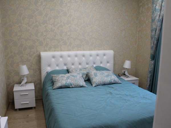 Обои для спальни в хрущевке лучше выбирать светлые, пастельные, с мелким неярким рисунком и светоотражающими деталями. Полностью глянцевое полотно выявит все неровности стен, а вот комбинация матового фона и зеркальных узоров — наоборот, скроет их.
