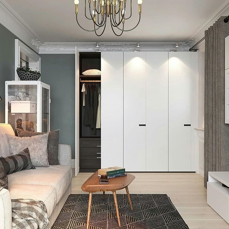 Изящное место для хранения поможет вам максимально эффективно использовать компактную квартиру-студию. Мы не имеем в виду, что все пространство на полу занимают массивные ящики и ящики — абсолютно нет! – но вместо этого находите место для хранения в местах, которые в противном случае не использовались бы. В квартире-студии ваша кровать, вероятно, будет одним из ваших самых больших предметов мебели и, следовательно, ключевым местом для поиска места для хранения; место под кроватью просто ждет, чтобы его использовали! Если у вас уже есть кровать с пространством под ней, отличная идея дизайна квартиры-студии — инвестировать в несколько бюджетных выдвижных ящиков, которые можно будет удобно разместить под ней. В качестве альтернативы, есть много кроватей, которые можно купить с предустановленным местом для хранения внизу. Здесь можно хранить все, от одежды до полотенец, чистого постельного белья, обуви и т.