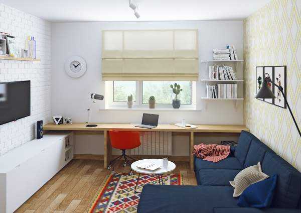 Наверное, такое дизайн является одной из самых сложных задач. Ведь одна комната должна служить и гостиной, и кабинетом, и спальной комнатой, и столовой. Вот почему задействовать нужно каждый метр площади квартиры.
