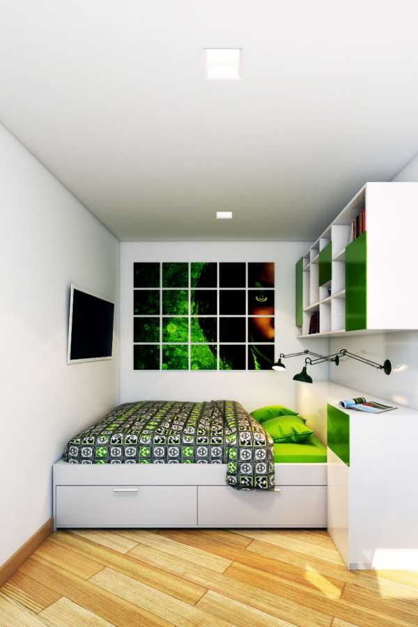 В этом помещении одним из центральных вопросов будет решение о правильном выборе и размещении кровати. Здесь есть несколько вариантов, над которыми нужно будет подумать, а именно: