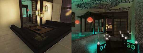 Обязательным компонентом комнаты отдыха является полка для хранения ароматических масел, а также чая, сахара и других составляющих, которые используются для приятного досуга. Окна в комнате отдыха скрываются с помощью хлопковых или бамбуковых шторок, которые являются экологичными и безопасными.