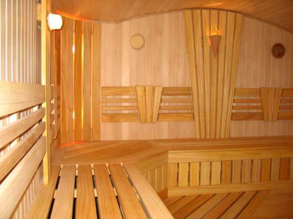 Парилка подразумевает обязательное наличие полок. Наиболее функциональным решением станет размещение многоступенчатых угловых полок, поскольку они позволяют существенно сэкономить пространство в комнате. В помещении ни в коем случае не должно быть острых углов, так как это, во-первых, небезопасно, а во-вторых, визуально сильно уменьшает парилку.