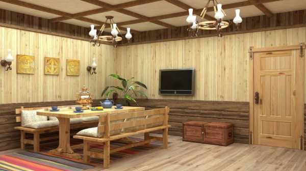 Внутренняя отделка в русском стиле предусматривает использование древесины. Она считается единственным полезным материалом, позволяющим создать уютный интерьер бани. В этом случае помещения наполняются естественным теплом, предлагая провести больше времени в загородном доме.