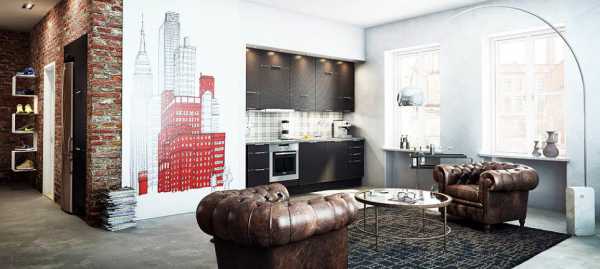 Стилистика одной части помещения не может кардинально отличаться, они должны согласоваться, даже если используется метод контраста.