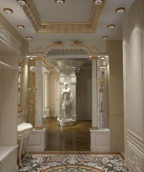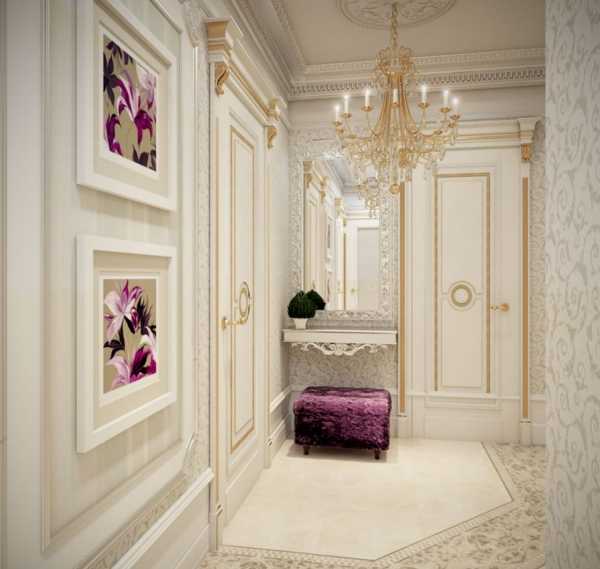 Классическую прихожую оформляют в светлых тонах: беж, пастельные оттенки, сочетания серо-белых цветов. На пол выстилают мягкие коврики. Зеркала оправляют в рамы овальной формы. Обои пастельных оттенков имеют нежные узоры со множеством завитушек. Картины, с изображениями сценок из средних веков только приветствуются. Мебель из натурального дерева светлых оттенков на изящных, витых ножках. Обязательно наличие плафонов или люстры сложной формы с мягкими изгибами. Приветствуется использование позолоты. В качестве элементов декора применяют раритетные вещи «с историей» или их имитацию. Потолок украшается аккуратной лепниной. Одним из компромиссных вариантов для приверженцев классики, которые все же готовы внести в нее элементы современного стиля, подойдет неоклассика. Это направление допускает небольшие модные «вольности» в оформлении.