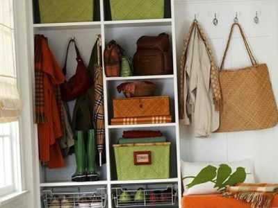 - Стоит оставить то, что занимает мало места, преимущественно в нижней и верхней плоскости – антресоли, обувницу или компактные полки для обуви.