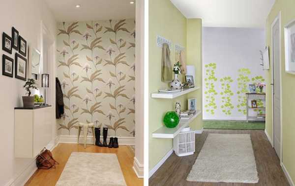 Рациональнее покрасить стены матовой краской или оклеить их обоями. Цветовая гамма играет значительную роль в дизайне. С ее помощью можно как увеличить, так и уменьшить пространство. Выбрать, какой цвет обоев будет подходить для мизерного коридора, можно, рассмотрев фото оформления небольших прихожих.