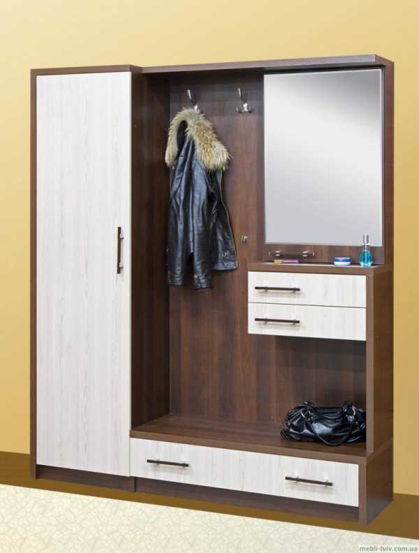 Вешалки стойки нежелательны. Многие думают, что они компактные. На самом деле, если повесить на них верхнюю одежду, можно заметить, что она занимает немало места. Лучше монтировать вешалки для верхней одежды в шкаф-купе. Лучше выбирать мебель светлых тонов, но желательно, чтобы ее нижний уровень был темным. Благодаря этому, грязь будет незаметной. Главное требование – компактность, так что антресоли и большие шкафы не подойдут.