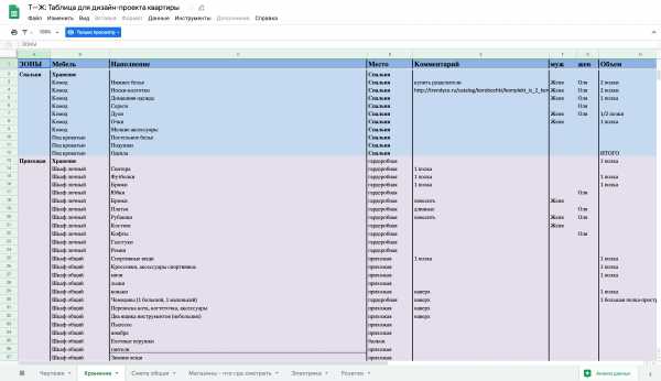 Итоговый вариант планировки мы сфотографировали и загрузили изображение в свою таблицу, создав отдельный лист «Планировка».