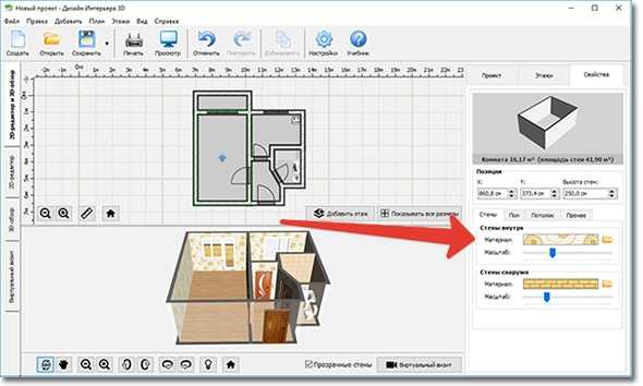 - Три режима работы: план (2D), 3D и виртуальная прогулка по интерьеру