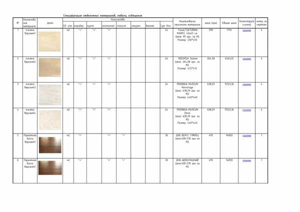 - Смета (спецификация материалов и оборудования)