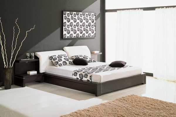 Интерьер спальни строится на гармонии пространства и света. Его основа – черный, белый и серый цвет. Гармоничны их сочетания с другими «чистыми» цветами – синим, желтым, красным.
