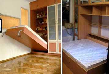 Любителям нестандартных, но практичных решений, можно посоветовать подиум-пенал или кровать-трансформер, прячущуюся в специальный шкаф.