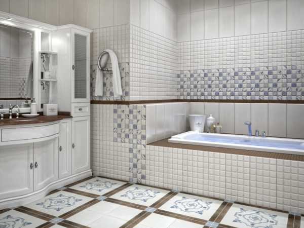 Можно использовать плитку различных оттенков или с разным рисунком из одной коллекции, сочетающихся между собой.