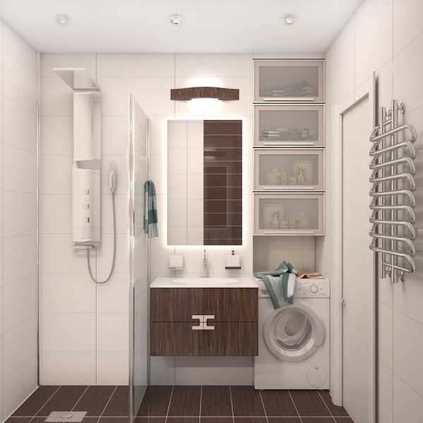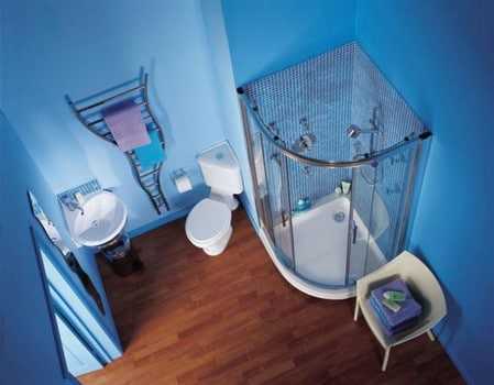 Здесь комната для купания не превышает 1,9 кв м, что позволяет разместить лишь душевую кабинку или ванную, умывальник нестандартного размера.