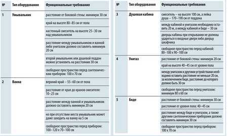 Расстояния между сантехническими приборами должны быть такими, чтобы ими было удобно и безопасно пользоваться