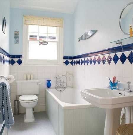 Морской стиль всегда остается модным: он подходит для любого санузла