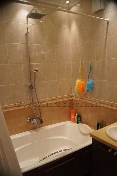 По желанию заказчика в этой ванной комнате установлен обычный телевизор, не предназначенный для влажных помещений!