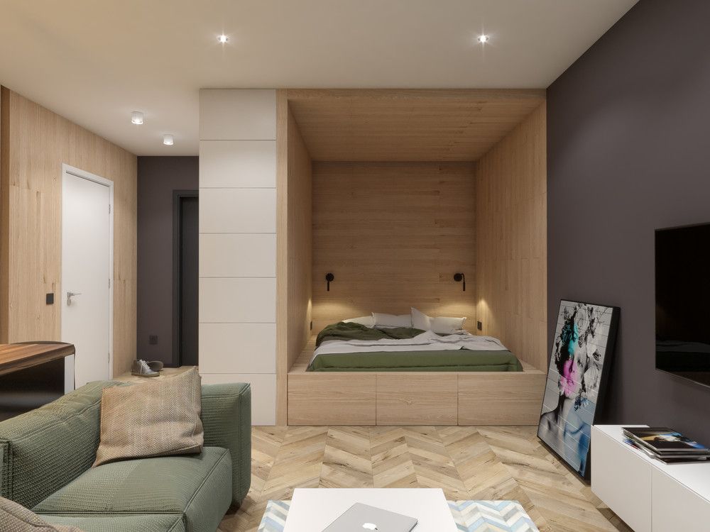 Спальня в однокомнатной квартире — 100 фото стильно и современного дизайна