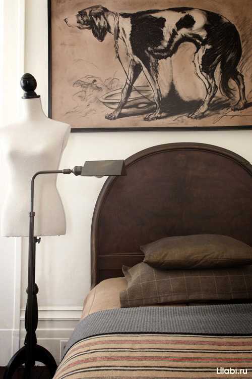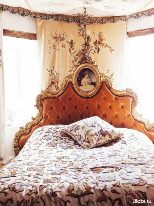Фото спальни в историческом стиле. Необычное изголовье с портретом — настоящая дизайнерская находка.