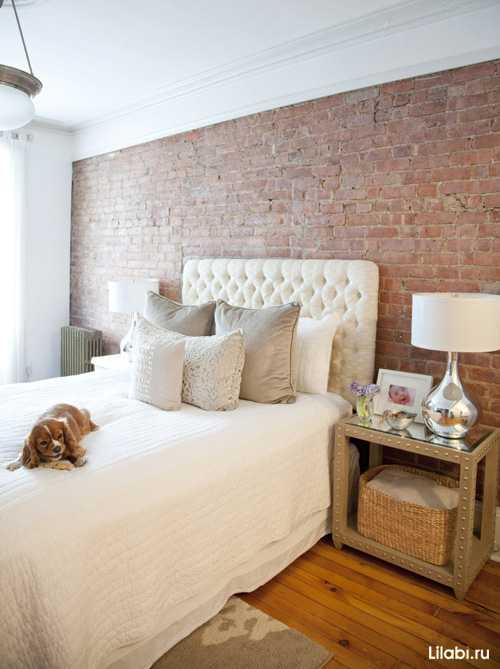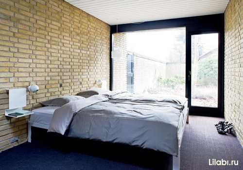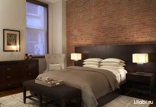 Фото дизайна спальни с кирпичными стенами. Не очень уютное помещение, но многим придется по душе. Особенно его оценят любители интерьеров в промышленном стиле и лофт.