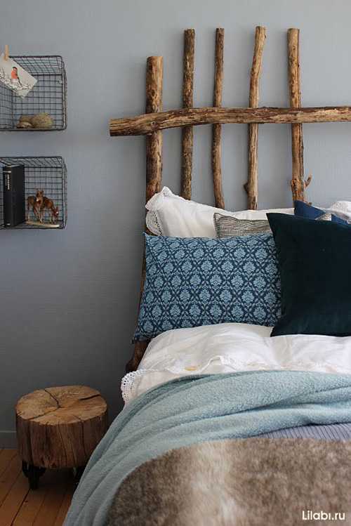 Необычное оформление кровати можно сочетать с мебелью и даже с рамой зеркала или художественной картины.