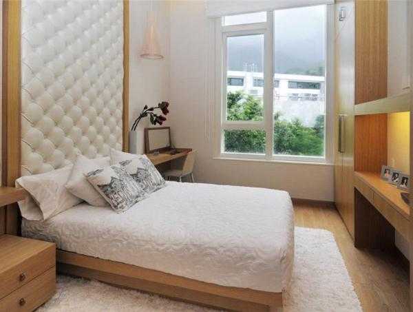 Дизайн небольшой спальни, фотоЧто касается напольного покрытия, идеальными считаются натуральные варианты либо те, которые выполнены под древесные оттенки.