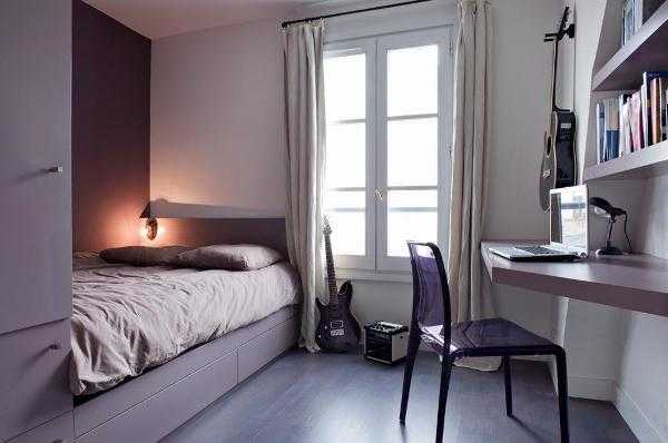 Фото, дизайн спальни маленького размераСтоит заметить, что рабочая поверхность может также выступать в роли туалетного столика.