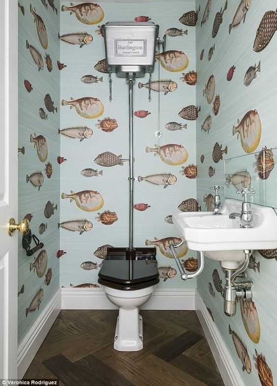 designworkshome.coОбои в санузлах – очень круто. Сразу чувствуешь себя прямо «дома-дома», а не в казарме. Про казарму однажды мне сказал заказчик – такое сходство увидел в крашенных стенах в санузле.
