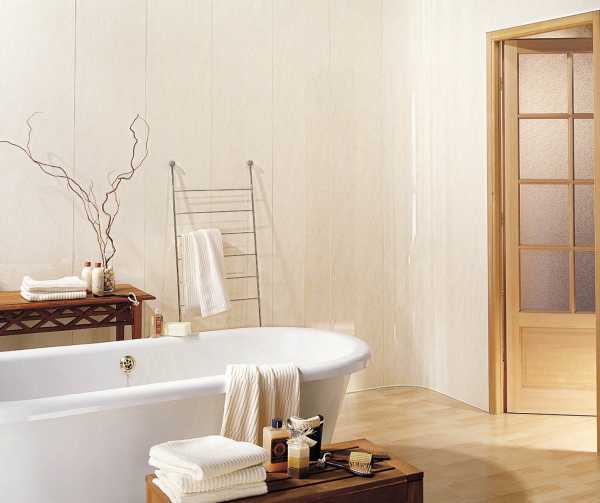 - Панели из пластика — наиболее недорогой вариант сделать дизайн стен ванной комнаты красивым и стильным.