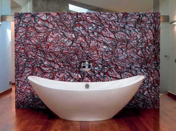 Такой материал способен сделать из ванной комнаты роскошное шикарное помещение, прямо намекающее на финансовое состояние своего хозяина.